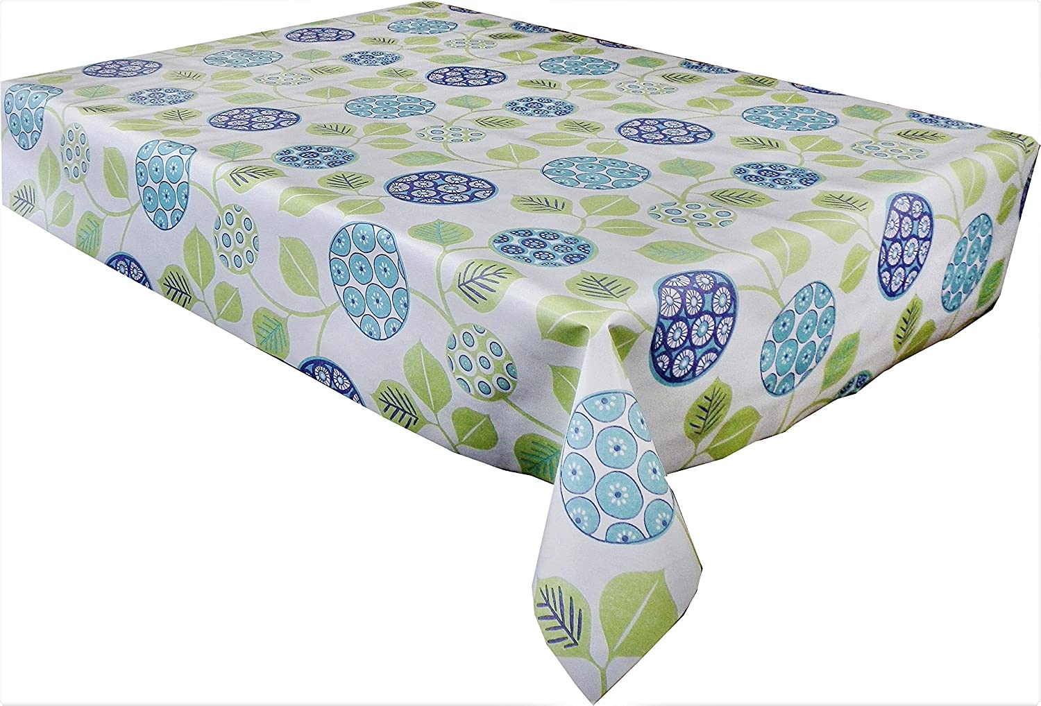 - This Cowslip vinyl tablecloth in blue and lilac on a cream ground will certainly catch the eye. The tablecloth has a non woven backing and is vinyl coated so just wipe clean. This will protect your table from those messes and spills, Ideal for outside use as well. Click on drop down box to choose size. From 1 metre to 5 metres and a 137 cm circular. If you require more than 5 Metres, combine sizes to amount required and leave message on checkout or email to confirm order is to be in one length.If the cowslip vinyl tablecloth is slightly too long you can easily be trim to size with a normal pair of household scissors, the vinyl tablecloth is 54 inch wide. The plastic tablecloth or vinyl wipe clean is a very popular choice due to the ease of maintenance. Any mess or spills just wipe clean with no hassle. They will last if looked after so if you use yours outside just bring in if bad weather. There are many designs to choose from with the floral print being very popular for the spring and summer. Browse through our shop to see over 150 designs with a great variety of floral and nature vinyl tablecloths. There are colours to suit every decor for inside and out.