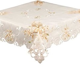 The gold candle Christmas tablecloth boasts intricate cut work that enhances its visual appeal, adding a touch of refinement. The embroidered design showcases bells and gold candles, which capture the essence of Christmas. These traditional holiday symbols, combined with the luxurious gold accents, give the tablecloth a festive and timeless look. - Material and Durability: